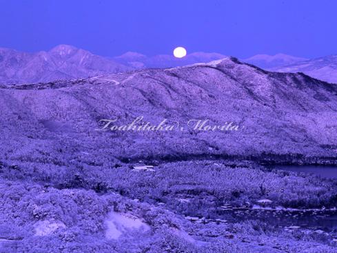 003291 芦ノ湖雪景と南アルプスへの月の入り 大観山 神奈川県