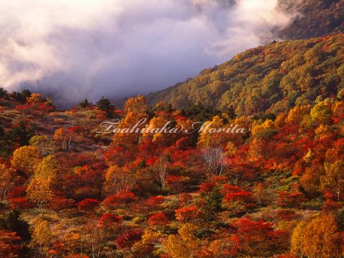034376 紅葉の天狗の庭と雲海 吾妻山 福島県
