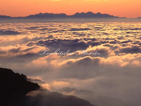 021569 朝日に染まる雲海と北アルプス 白山 石川県
