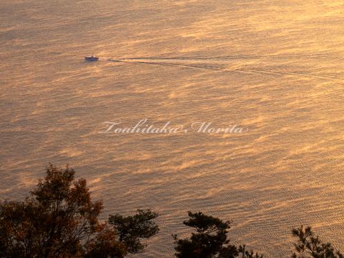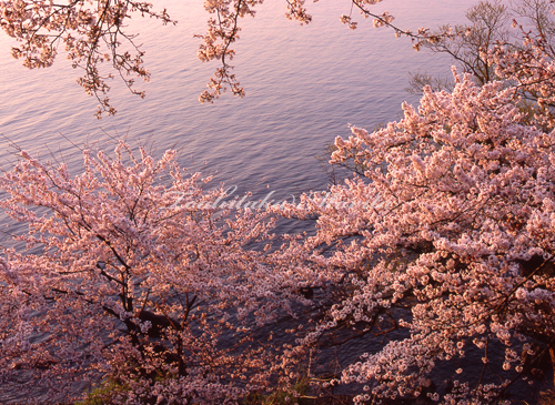 027385 朝日に染まる海津大崎の桜 琵琶湖 滋賀県