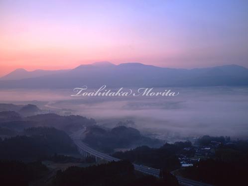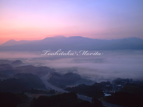 035092 加久藤盆地の雲海に浮かぶ霧島連山の黎明 宮崎県